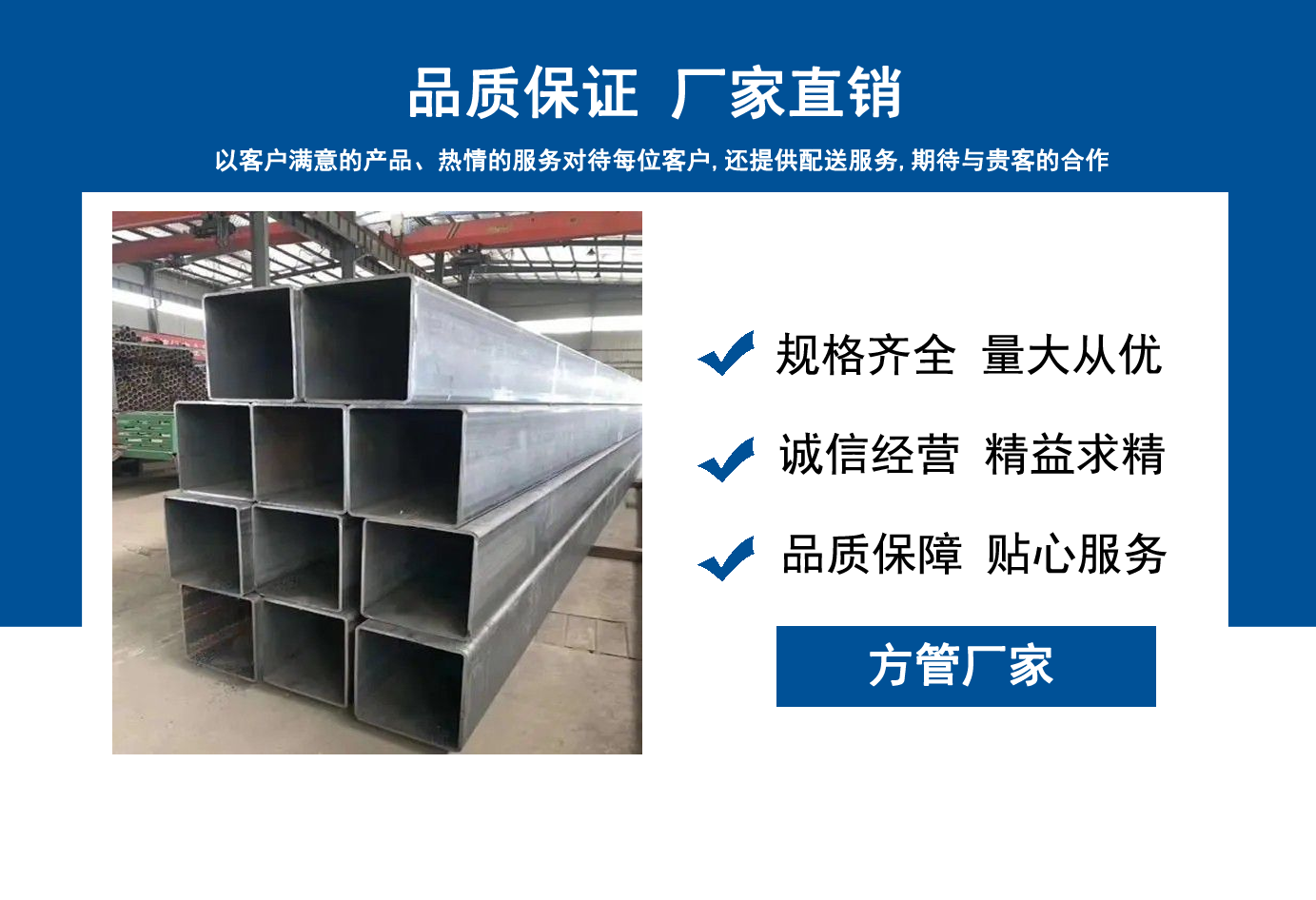 山東方管廠主要生產(chǎn)Q355B方管,Q355C方管,Q355D方管,Q355E方管,低合金方管等,曾多次為客戶解決了各種無縫管疑難問題,經(jīng)不斷的創(chuàng)新與努力,得到了客戶良好的信譽(yù)和稱贊。 公司秉承質(zhì)量、服務(wù)是我們尋求發(fā)展的唯一途徑,為客戶提供極具市場競爭力的高品質(zhì)產(chǎn)品,愿與客戶一起進(jìn)步、共享成功! 我公司秉承“誠信經(jīng)營,服務(wù)周到”的經(jīng)營原則,全力以赴,給客戶周到滿意的服務(wù)。“誠信、專業(yè)、認(rèn)真、服務(wù)”是我們的宗旨。幾年來我們用專業(yè)的技術(shù)和周到的服務(wù)贏得了廣大客戶和供應(yīng)商的信賴,與各大企業(yè)有著廣泛的合作和聯(lián)系,受到了業(yè)內(nèi)好評。我們會以優(yōu)良的產(chǎn)品、優(yōu)惠的價格、優(yōu)先的貨期、優(yōu)良的服務(wù),珍惜客戶給予我們的每一個機(jī)會。...